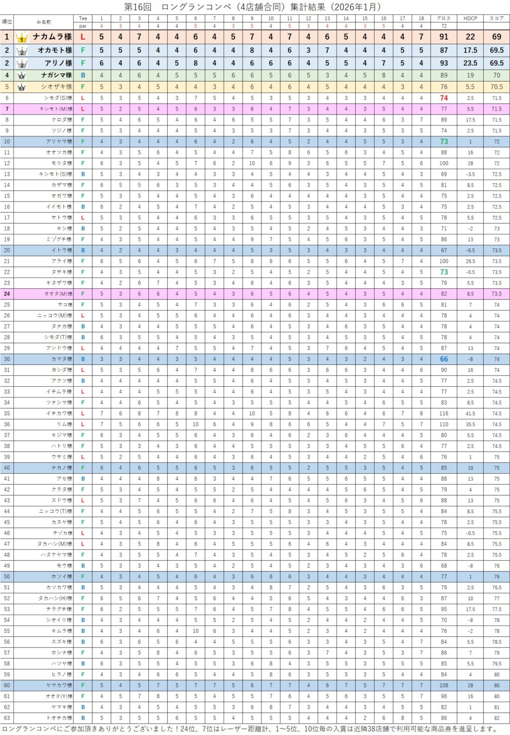 今回のコンペは、当店でプレー可能なコースの中では距離が長いコースで実施したため、